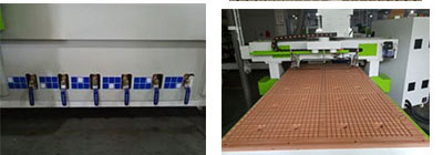 主要功能:柜體連接適合包括普通三合一,樂扣隱形件,槽孔滑扣隱形件,拉米諾隱形件等連接方式。異形板材,自動(dòng)打孔,開槽。5+4排鉆自動(dòng)打孔,主軸負(fù)責(zé)開料、開槽、和打孔。一鍵吸塵推料等。軟件自動(dòng)拆單,優(yōu)化排版,減少浪費(fèi),設(shè)計(jì)加工一條龍。