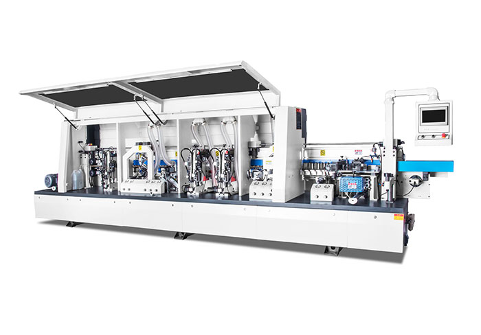 6輪壓貼貼合比4輪更精密,膠線輕微不跑帶,貼合牢靠,厚薄木皮均可輕松走帶,氣缸控制開(kāi)關(guān)膠門(mén),膠量穩(wěn)定,厚薄均勻。 |