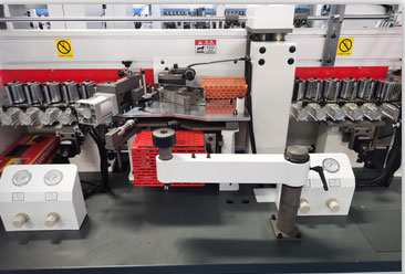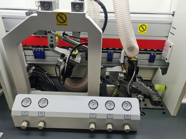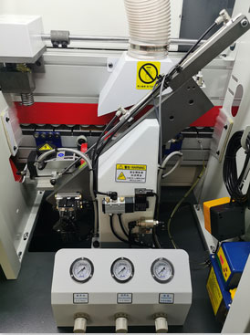 切斷板材兩頭的多余封邊帶(氣缸帶2個(gè)調(diào)壓閥1個(gè)泄壓閥)氣壓更穩(wěn)定,齊頭齊尾更穩(wěn)定. |