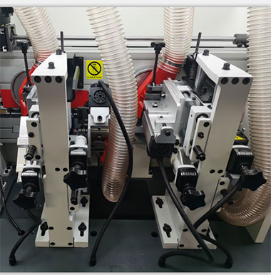 金剛石預(yù)銑刀銑去木板螺旋修邊刀的波紋痕跡和多余的毛刺,使板邊更貼合封邊條,粘接更牢固,更美觀。氣動(dòng)控制的預(yù)銑座,更精確,操控更方便。 |