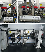6輪壓貼貼合比4輪更精密,膠線輕微不跑帶,貼合牢靠,厚薄木皮均可輕松走帶,氣缸控制開關(guān)膠門,膠量穩(wěn)定,厚薄均勻。 |