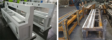 采用方鋼焊接,回火處理,消除焊接應(yīng)力,保證使用多年后不會變形。床身焊點(diǎn)比較密集,增加了床身強(qiáng)度,保證機(jī)架不變形。 |
