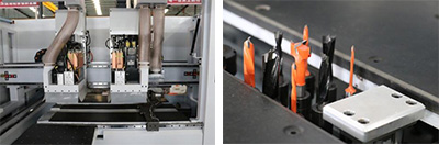 垂直/水平排鉆搭配主軸,可實(shí)現(xiàn)多元化加工,通過式打孔,一次性完成打孔,開槽。 |